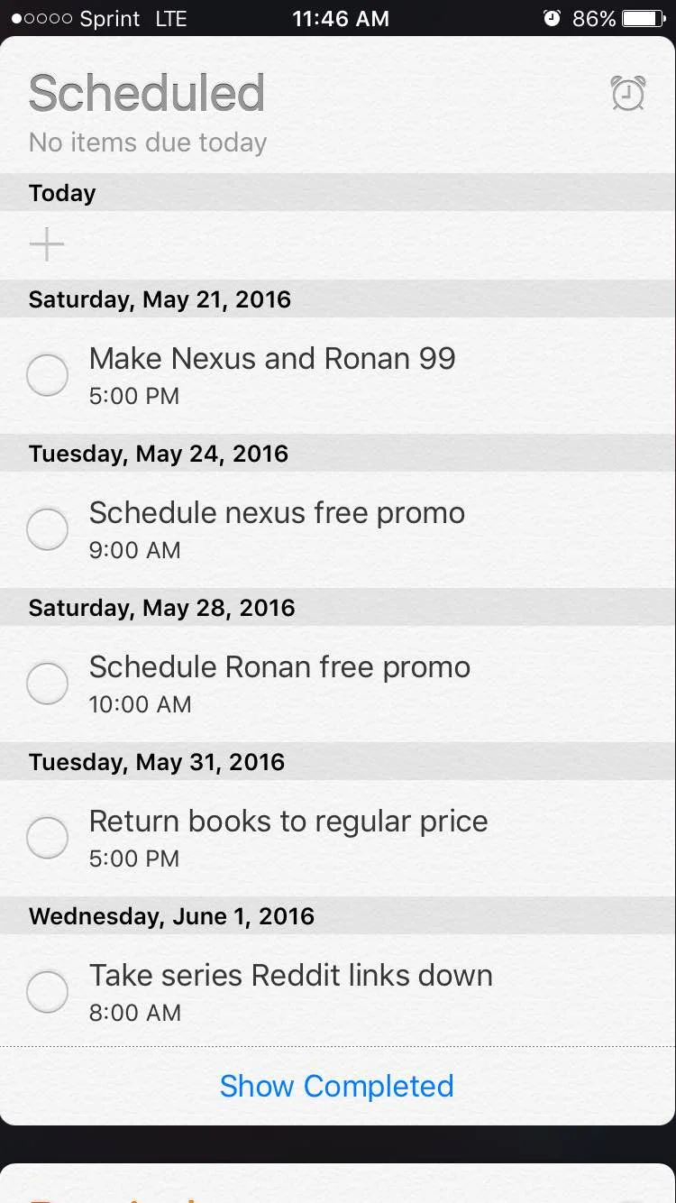 I've had my little 1-2-3 promo running this month for Dakiti's upcoming anniversary (reminder: you can still get it for just $0.99, and Nexus and Ronan will both be $0.99 as well starting this Sunday), and because I'd rather not have to worry about remembering to make new posts for each stage (which, with everything I've got going on, is harder than you might think), I've made a lot of use of Facebook's post-scheduling functionality for fan pages. Now if only that was available for profiles! But still, it's not that hard to log in with my regular profile and share a post that's already been made. Saves me the time of having to re-type everything. I can also do this on Twitter to an extent with TweetDeck's scheduler, but if there's a way to insert images in TweetDeck, I have yet to figure it out. But I did create the various images for each stage of the promotion all at once, so they've just been sitting there ready to go for almost a month already. The basic iPhone reminder app has come in extremely handy as well for making sure I get prices changed and whatnot. Setting everything up ahead of time so that I only need to hit a couple of buttons at the right moment has really helped.